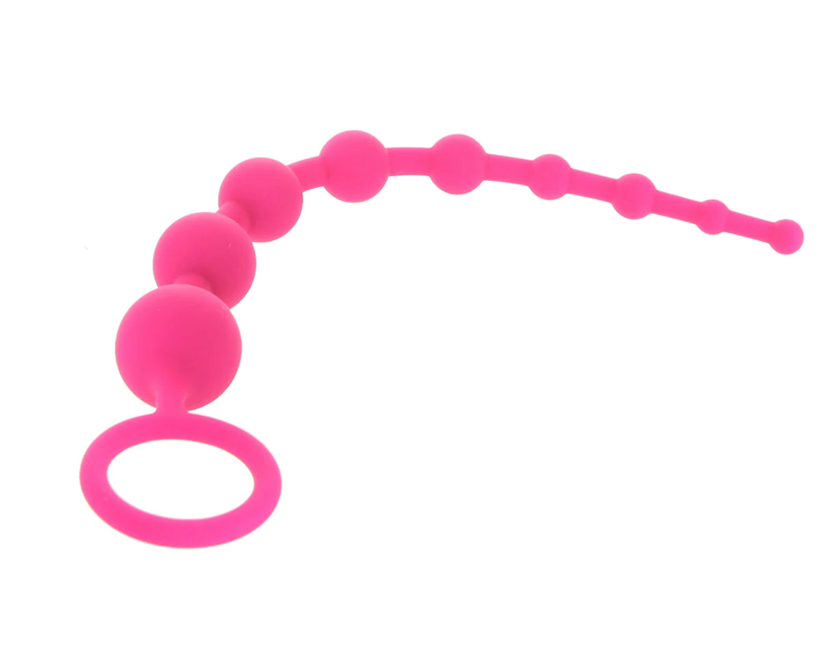 Featuring nine smooth swells of bumpy bliss, the Beads penetrate with a smooth, sexy 'pop' thanks to a tiny beginner bead. Move on up to the gradually larger beads when you're ready, or stick with one that feels particularly good. In either case, a big ringed handle makes positioning, tugging, twisting and removal a total breeze.Â