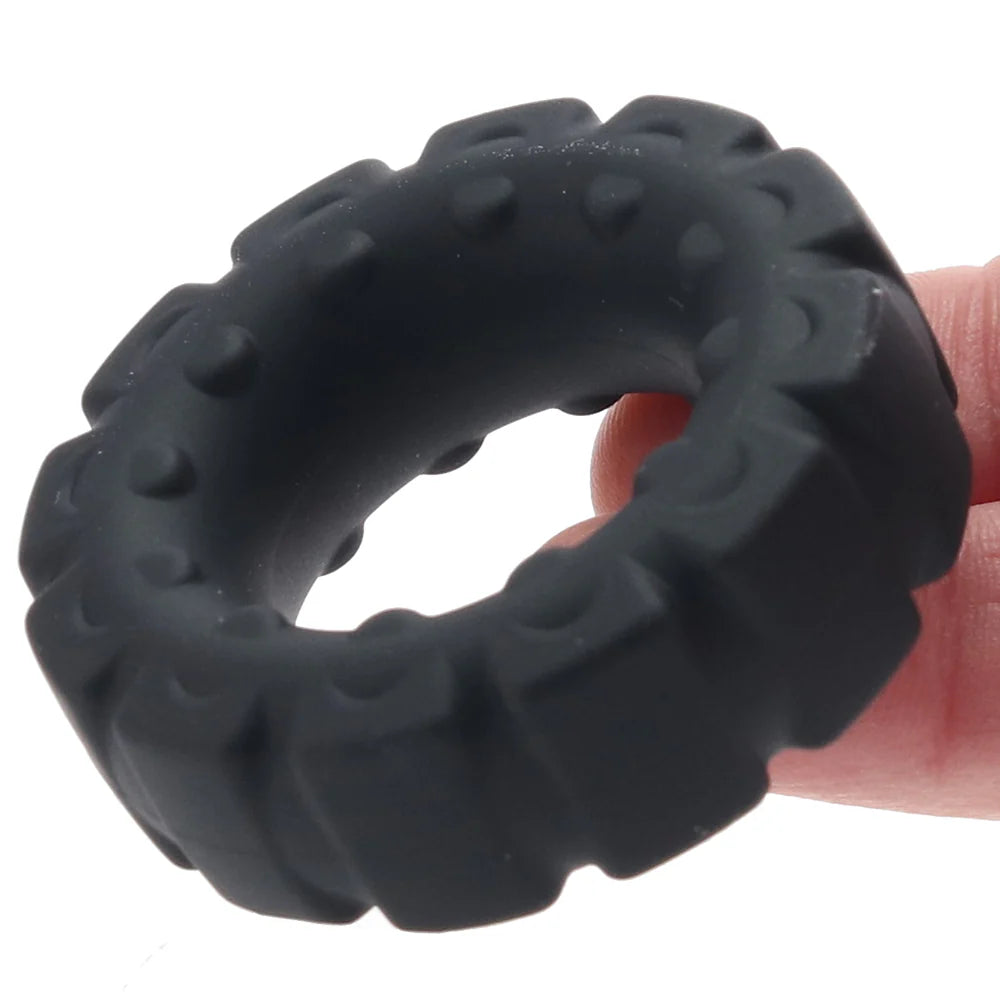 Stretch the tire-textured silicone band over any penis or penetrator to experiment with pressure, positioning, and stimulation; wear it over your fingers, or try it out (carefully) on a scrotum. If a penis is involved, the Tread can help support and maintain its owner's erection and can even upgrade the intensity of their orgasm.