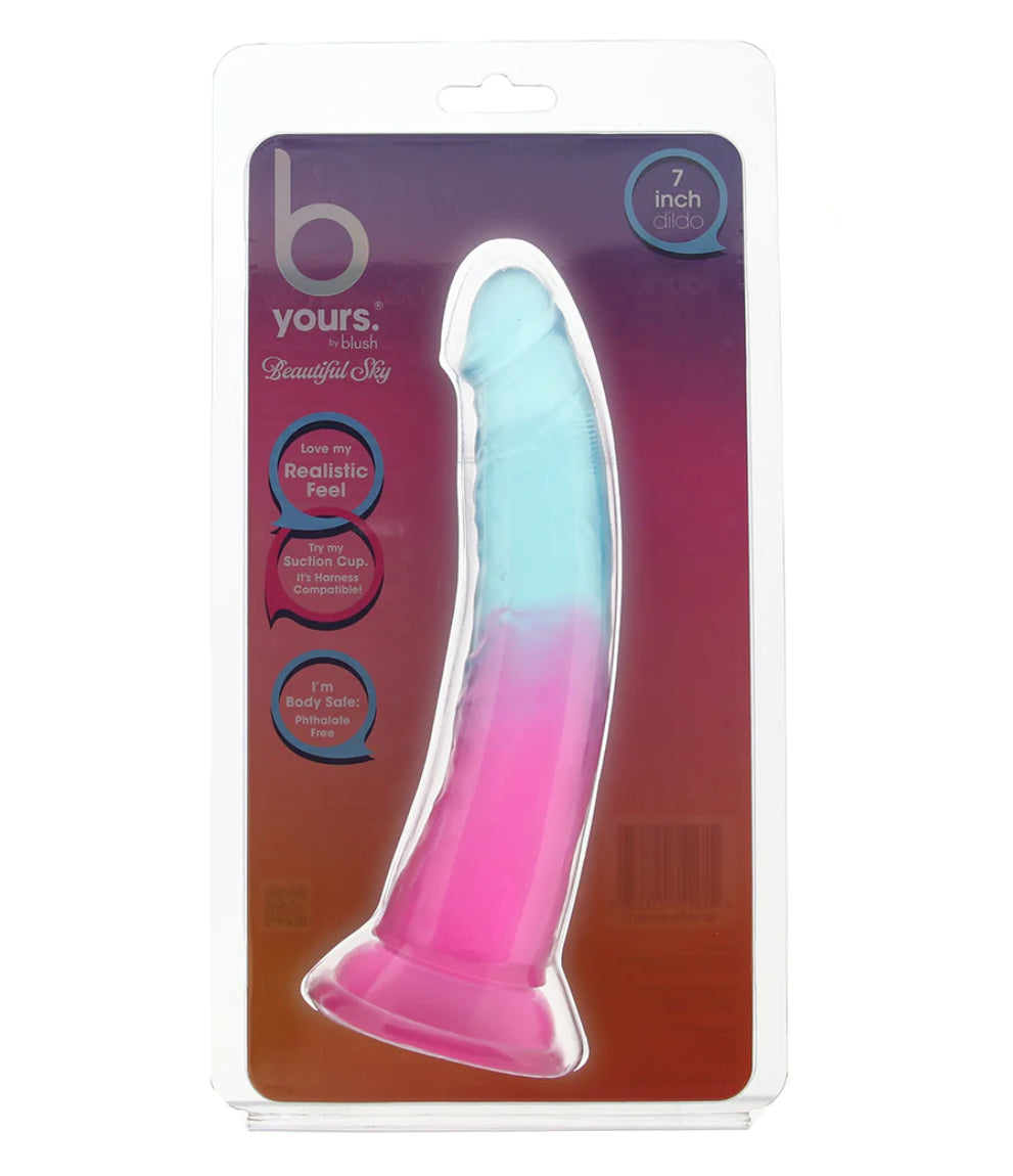 In nonporous phthalate and fragrance free PVC, the Beautiful Sky Dildo is body safe and extra easy to clean and maintain. Before and after playtime, wash it well with lots of warm soapy water, or use a compatible toy care fluid/foam. This dildo can be safely enjoyed with any favorite water based lube.