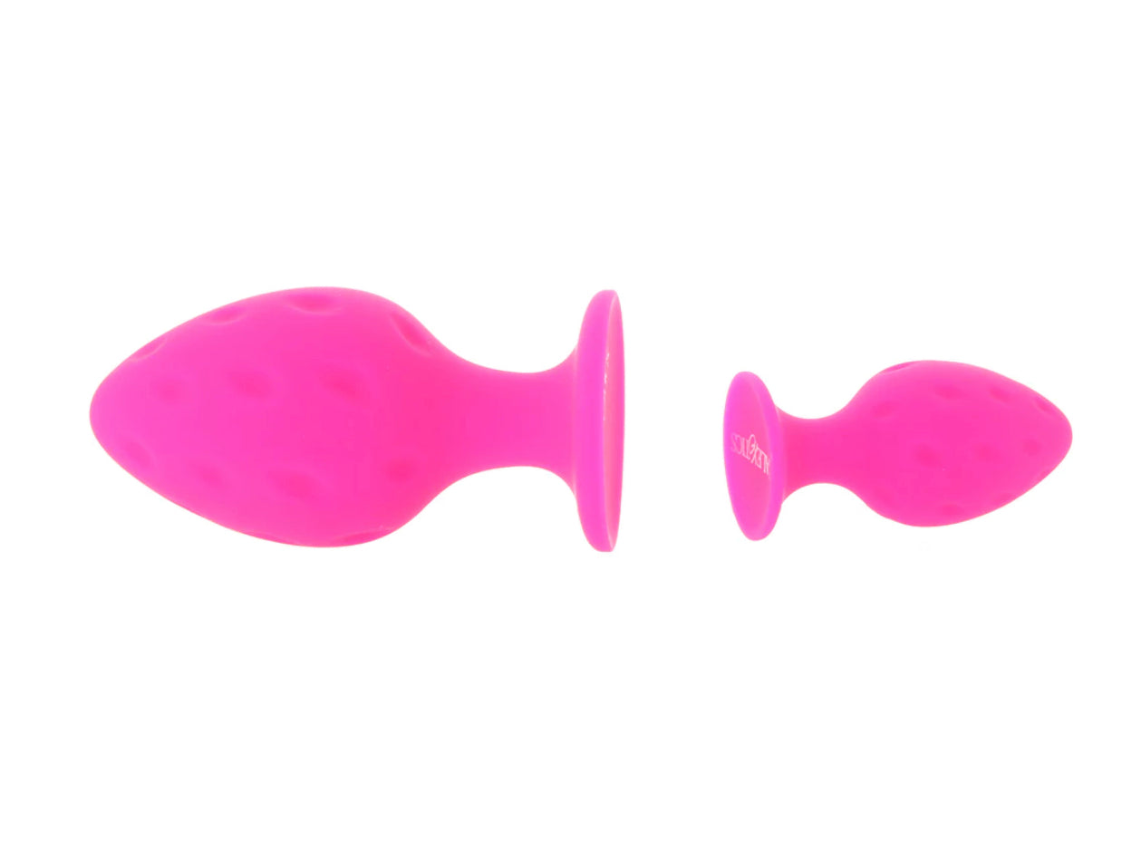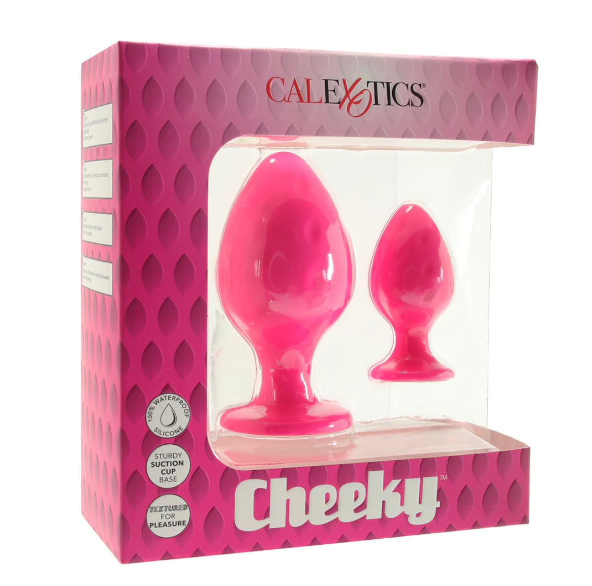 Taking you straight from a sexy warm-up to some deep, stimulating stretch with nothing in between (who needs a middleman, anyway!), the Cheeky Pink Textured Butt Plug Set contains two perfect textured silicone plugs, one big and one small.