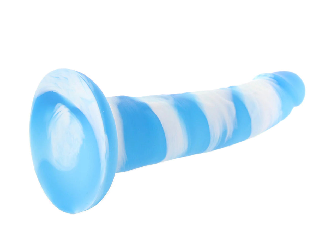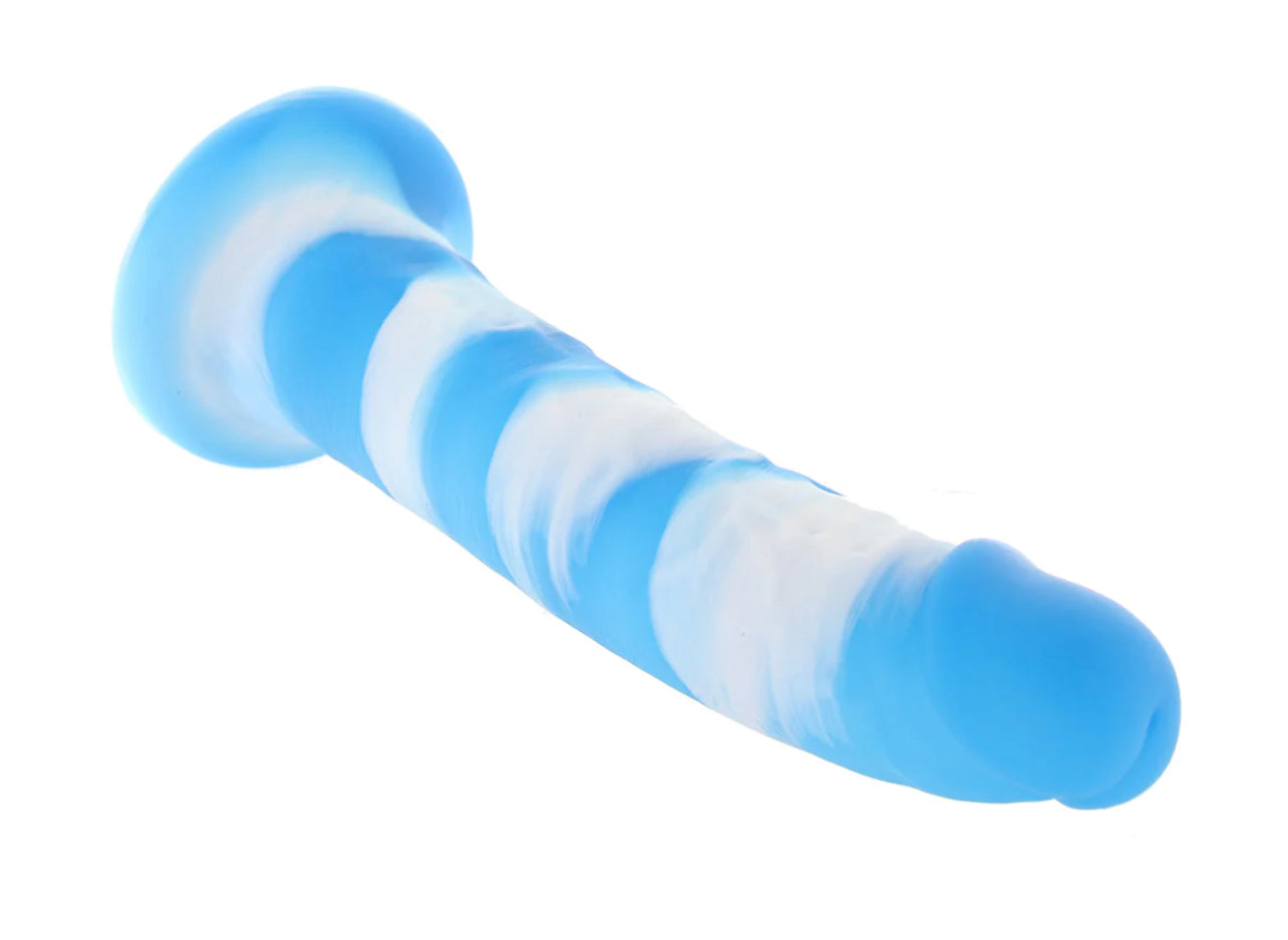 Aside from a sweet and swirly blue and white palette, the Yum Yum features some seriously versatile styling and a lifelike, super-satisfying shape. Sleek and slightly tapered at the smooth tip, the soft-yet-firm shaft slips smoothly and stealthily into waiting butts, vaginas, mouths and so on.