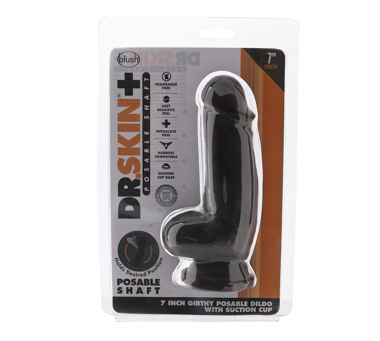 Dr. Skin Plus 7 Inch Girthy Poseable Dildo in Chocolate