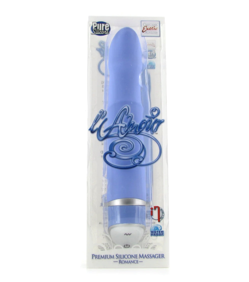 Romance your g-spot, along with any other senstive places on your pleasure-loving body with the classic, elegant Romance vibe. Made from pure silicone, the Romance delivers pleasure anywhere its placed, with its semi-realtic shape, silky smooth, seamless surface, subtle curves and irresistible contouring that will appeal to any pleasure seeker. Inside the firm head lies the powerful motor, which features resonating vibration, giving the L'Amour a more deep, throbbing feel than the average vibe. Since the source of all that resonation and a full 7 functions of vibration, pulsation and escalation sits right at the head, you'll feel the stimulation right against you, no matter what erogenous zone you're set on pleasing. Perfect for both penetration and external sensation, the head bends subtly on the slightly more flexible body for the most perfect positioning, and steady satisfaction once in place. Softly lit, luminous controls show you the way to change the intensity and stimulation patterns, a single button lets you cycle easily through. Be sure to use a good water based lube with L'Amour if needed, it'll keep the quality silicone material at it's best. Avoid silicone lubricants, and store this vibe away from other silicone toys. Takes 2 AA batteries (sold separately). Waterproof.