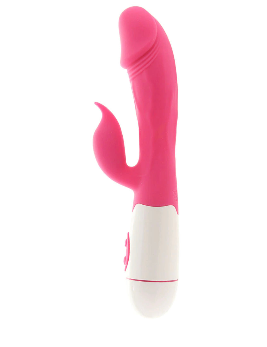 In bright pink silicone, the Lotus #6 Rabbit Vibe feels just as good as it looks, and it looks really, really good. This vibe features a flexible, penis-esque shaft with lots of curvy, g-spot seeking surface area to play with. As it pulses and throbs inside, a tapered, flickering external stimulator lavishes lots of orgasmic love on your (or your partners) clitoris and other outer sweet spots.