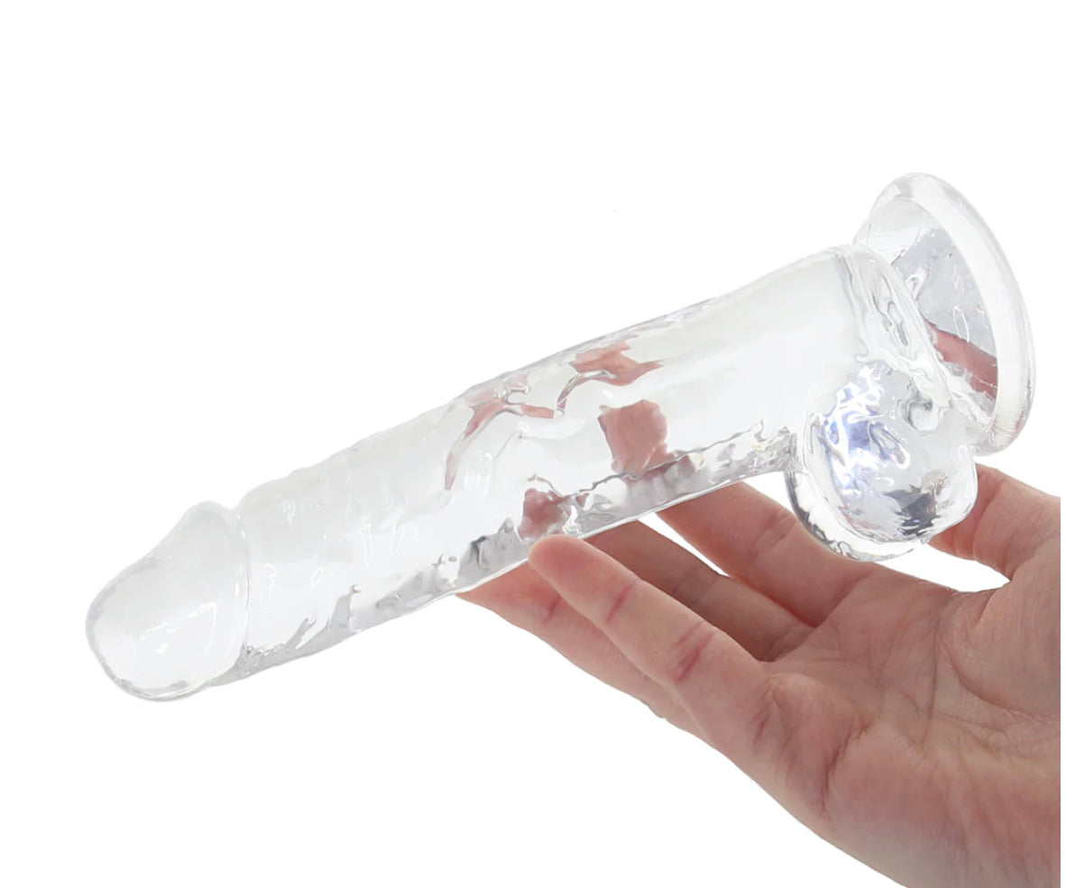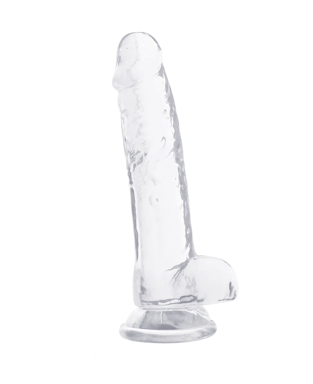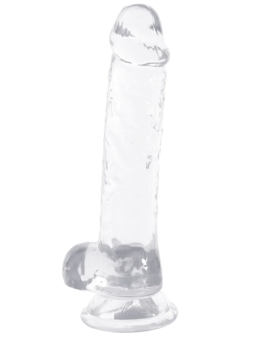 Coming in seriously handy during all sorts of playtime penetration scenarios and general erotic merriment, this flexible dildo features a nice big ballsy base that'll be compatible with most O-ring style harnesses and strap-on configured garments/play gear. If strapping one on isn't in the cards, you'll still have the option of playing hands-free, all thanks to a sturdy suction base. Press it firmly against most smooth, nonporous surfaces to attach your 7 Inch Crystalline Dildo to floors, walls, windows - you get the idea.