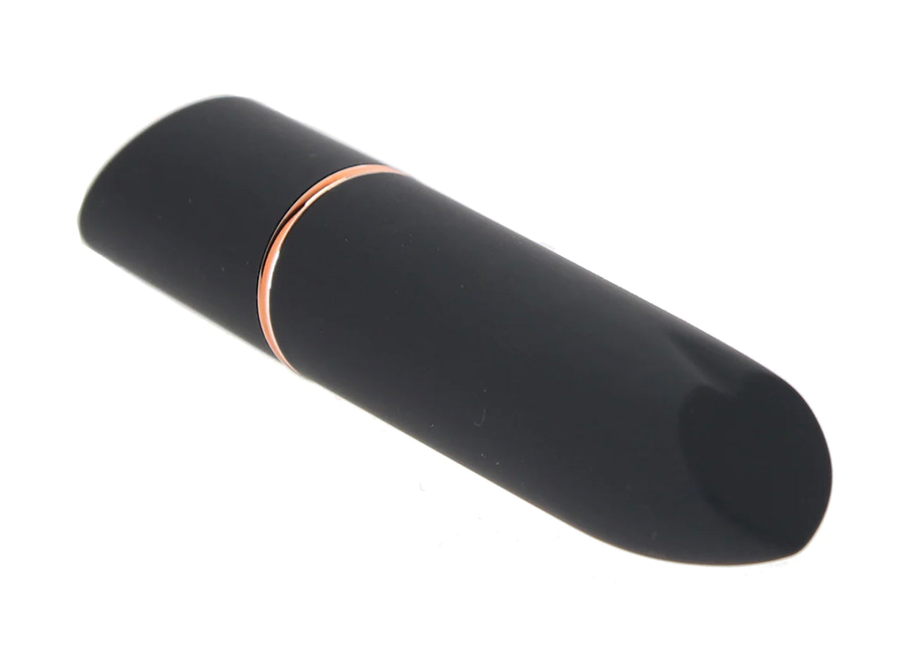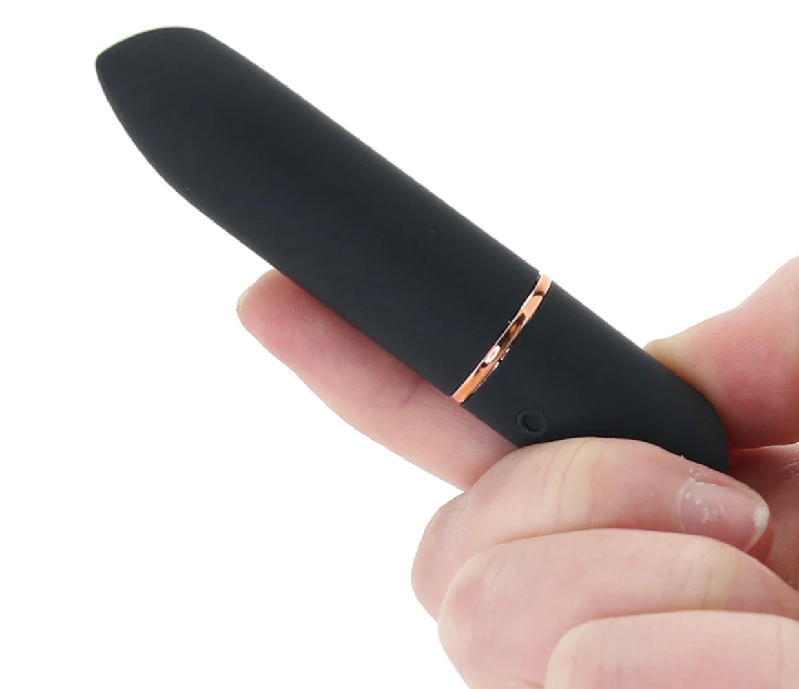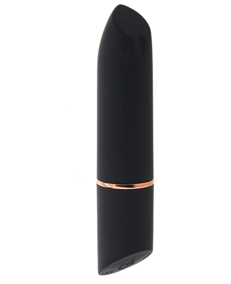 Fitting right alongside wallets, pens and other everyday purse/pocket dwellers, the Mini can come along on just about any adventure, and no one but you (and maybe a playmate) will ever know.  A silky-firm slanted tip is perfect for targeting clits, nipples and otherwise. One button at the base activates and varies ten modes of vibration. By the way, you can say so long to batteries, because the Mini is fully USB rechargeable. Charge cord included.