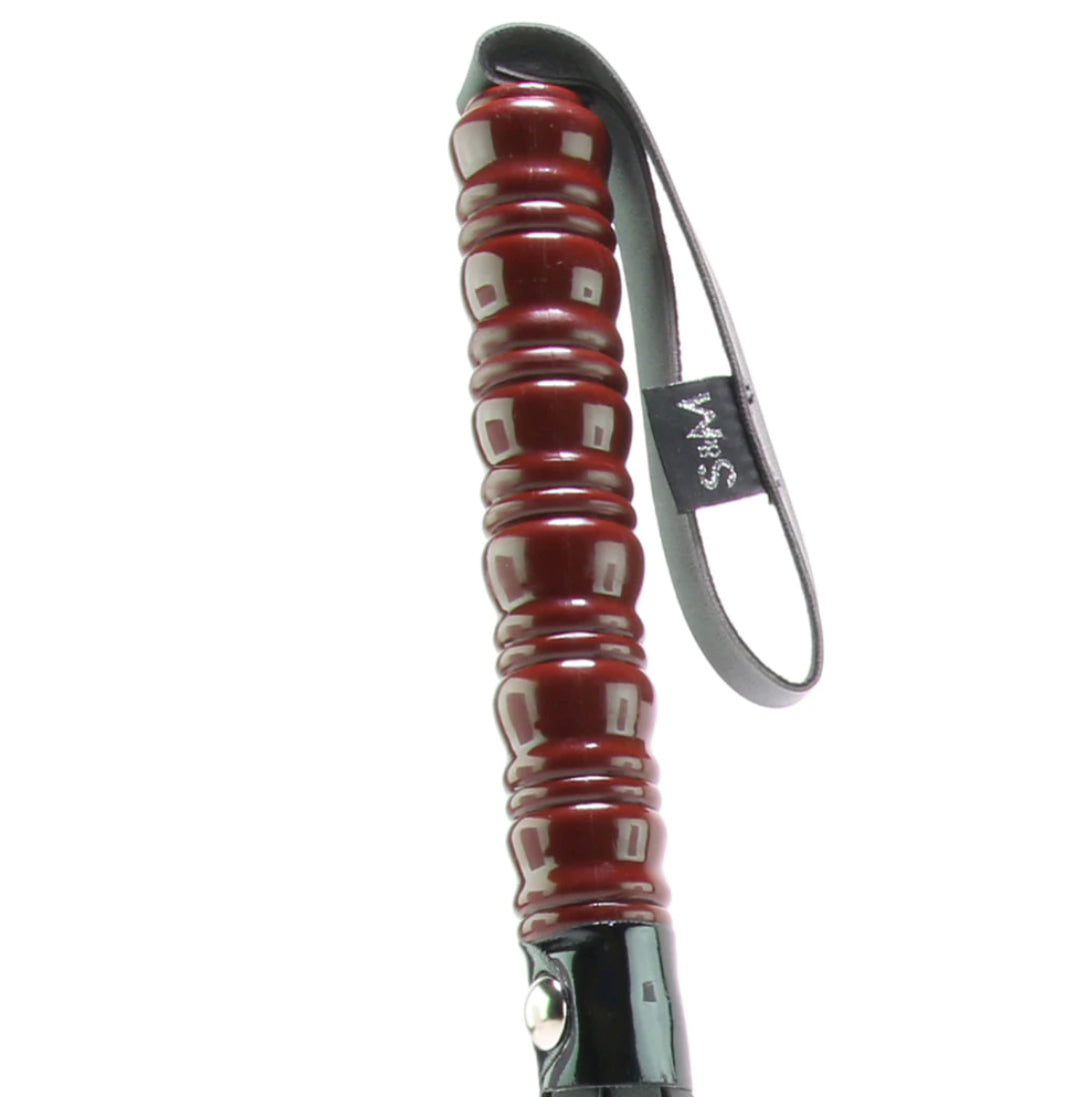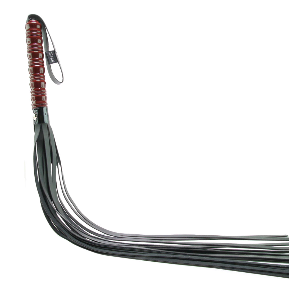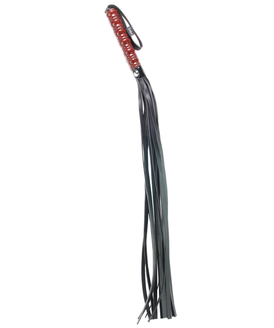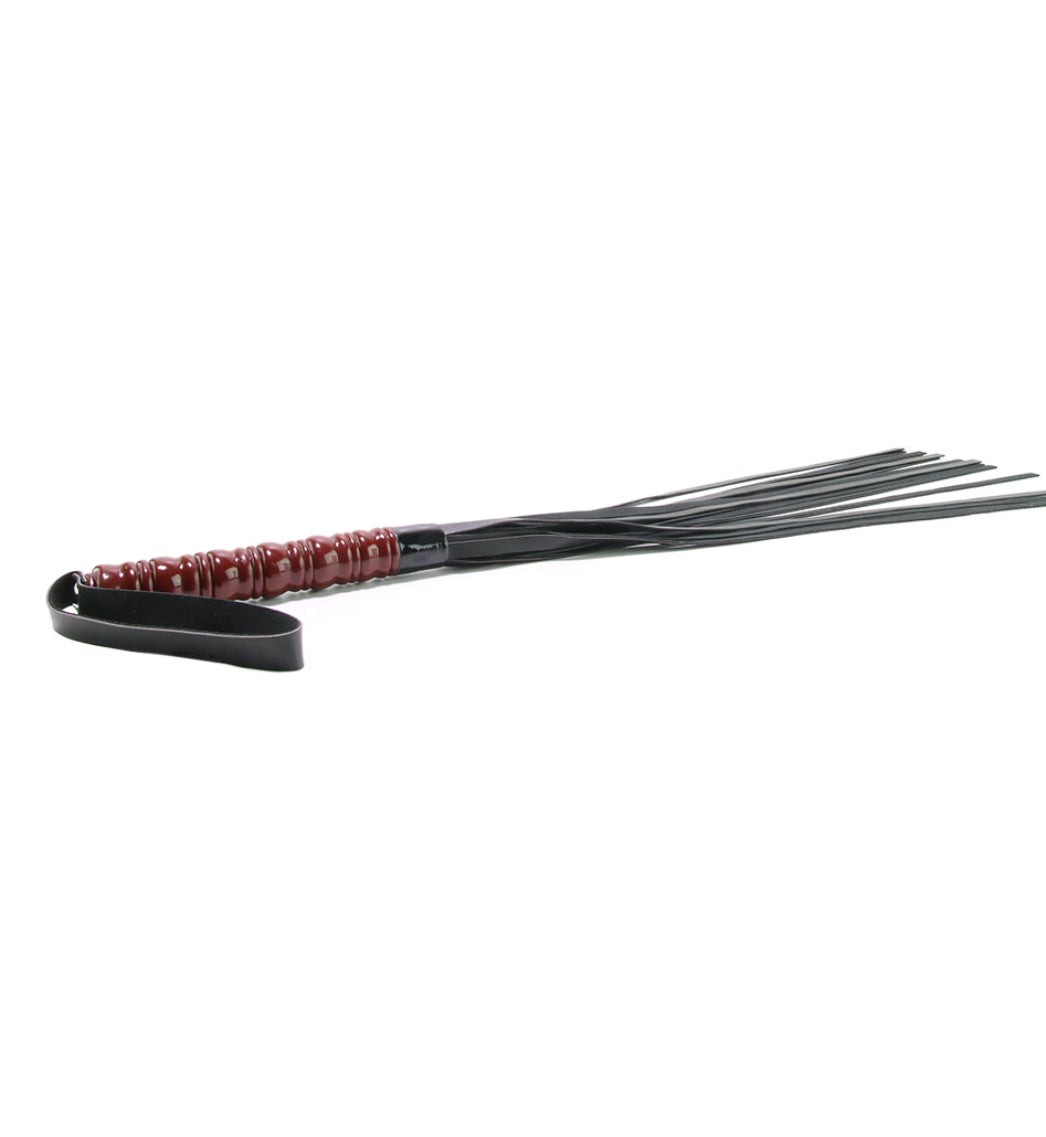 A sexy, serious looking whip from Sex & Mischief's irresistible collection of S & M staples, the Mahogany Flogger, aside from having a name that rolls off the tongue (try it!), is a no-nonsense cat-o-nine-tails style treat that will deliver enough sting to please the connoisseurs, but can also feel as gentle as you desire- it's all in how you choose to use it. A sturdy, precise handle is made from firm, shiny lacquered wood, it fits perfectly in hand and provides a good grip thanks to a grooved shape and long wrist cord. The long, swishy tail is made up of 15 thin strips of faux leather with enough length for enthusiastic flicking, teasing and whipping. Total length is 30 inches (76.2cm).