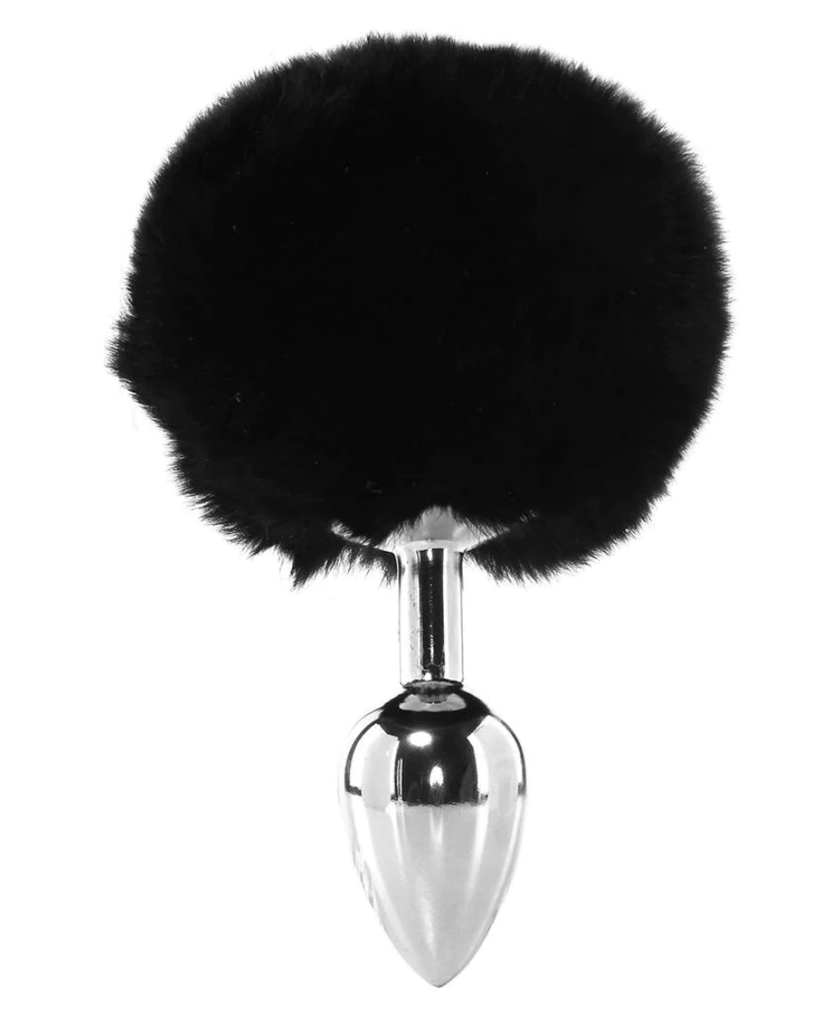 Backed by a silky puff of black rabbit fur, Sincerely's Metal Bunny Plug easily adds lots of playful deviance to a classic anal tool. Sleek and super smooth, a tapered metal plug penetrates comfortably, positioning its sexy swell alongside backdoor sweet spots as the furry tail peeks out the backside.