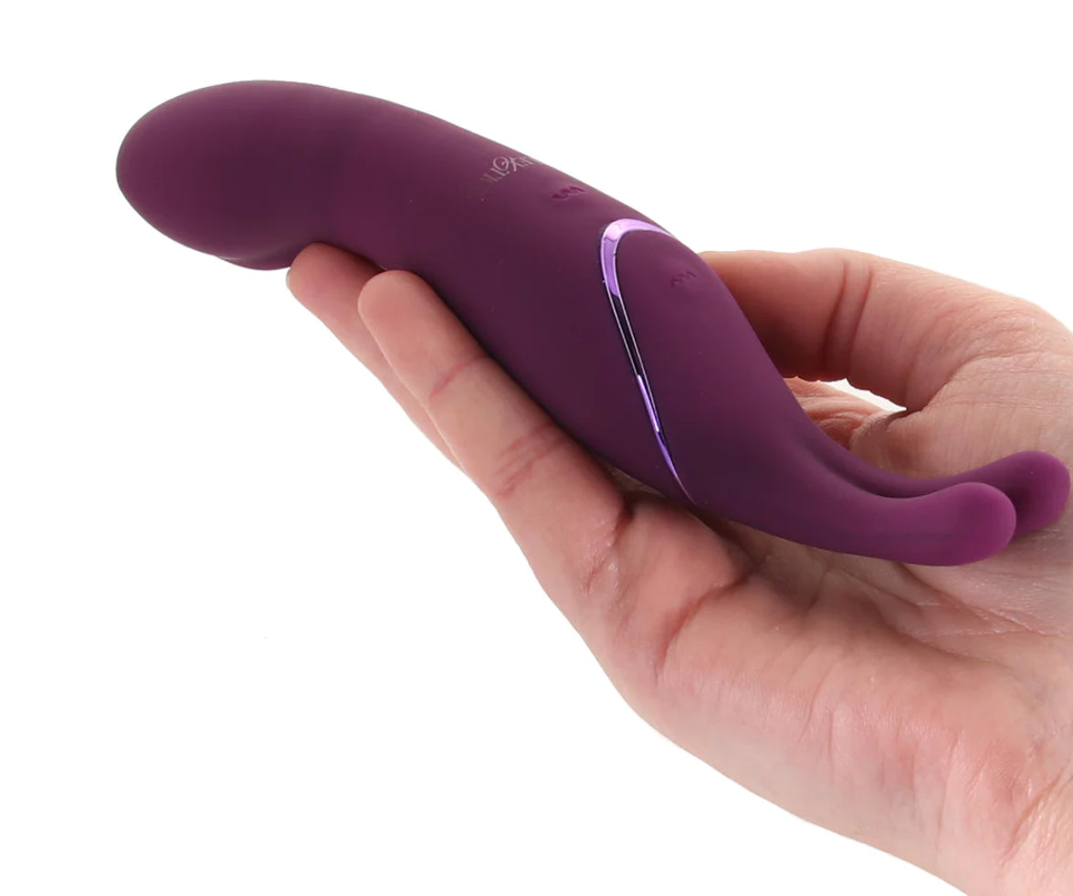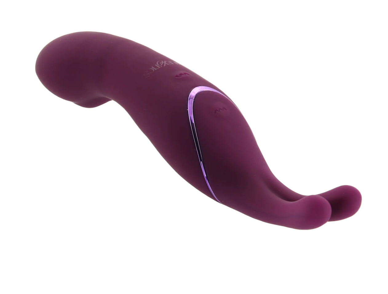 Now, as to that potential penetration we mentioned! Opposite that tickly, super-sassy stimulator tip (functioning as a handle 'till you need it), you'll find a subtly curvy, tongue-inspired silicone shaft. Use it to pinpoint your or your partner's g-spot plus other pleasure-craving areas inside or out as seven more rumbly vibe modes buzz and throb. Tickler vibration and shaft vibration are separately controlled using dedicated buttons, which lets you pick and choose your perfect combo.